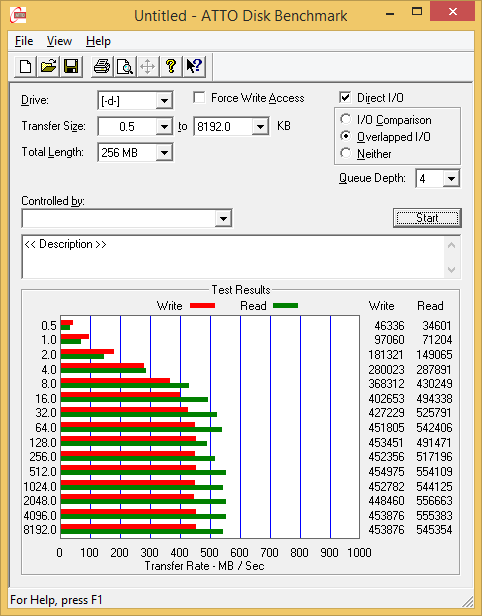 ATTO Disk Benchmark is perhaps one of the oldest benchmarks going and is definitely the main staple for manufacturer performance specifications. ATTO uses RAW or compressible data and, for our benchmarks, we use a set length of 256mb and test both the read and write performance of various transfer sizes ranging from 0.5 to 8192kb. Manufacturers prefer this method of testing as it deals with raw (compressible) data rather than random (includes incompressible data) which, although more realistic, results in lower performance results.