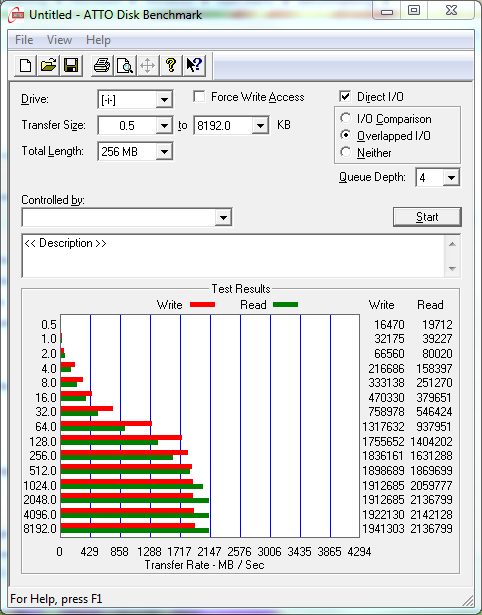 ATTO Disk Benchmark is perhaps one of the oldest benchmarks going and is definitely the main staple for manufacturer performance specifications. ATTO uses RAW or compressible data and, for our benchmarks, we use a set length of 256mb and test both the read and write performance of various transfer sizes ranging from 0.5 to 8192kb. Manufacturers prefer this method of testing as it deals with raw (compressible) data rather than random (includes incompressible data) which, although more realistic, results in lower performance results.