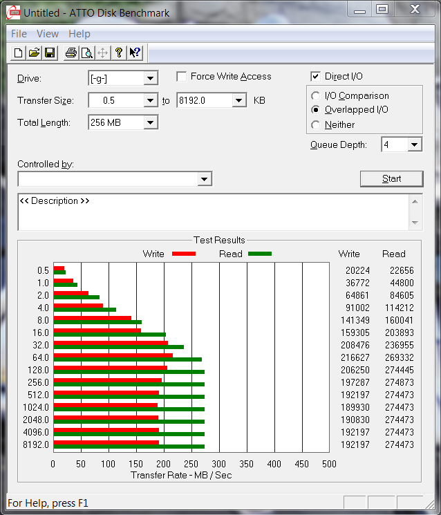 ATTO Disk Benchmark is perhaps one of the oldest benchmarks going and is definitely the main staple for manufacturer performance specifications. ATTO uses RAW or compressible data and, for our benchmarks, we use a set length of 256mb and test both the read and write performance of various transfer sizes ranging from 0.5 to 8192kb. Manufacturers prefer this method of testing as it deals with raw (compressible) data rather than random (includes incompressible data) which, although more realistic, results in lower performance results.
