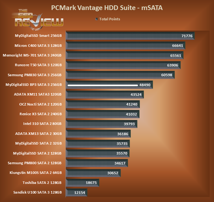 Our mSATA SSD Chart displays all mSATA SSDs tested to date and ranks them in order of their PCMark Vantage Total Point Score only: