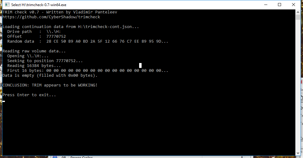 As can be seen in the screenshot above, TRIMcheck’s result is positive. TRIM is indeed working.