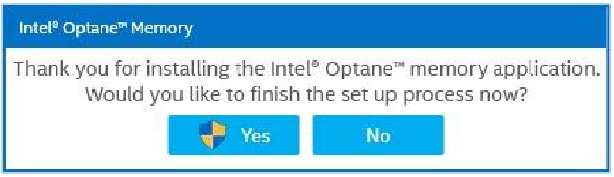 - Pressing yes will bring up a screen to enable Intel Optane:
