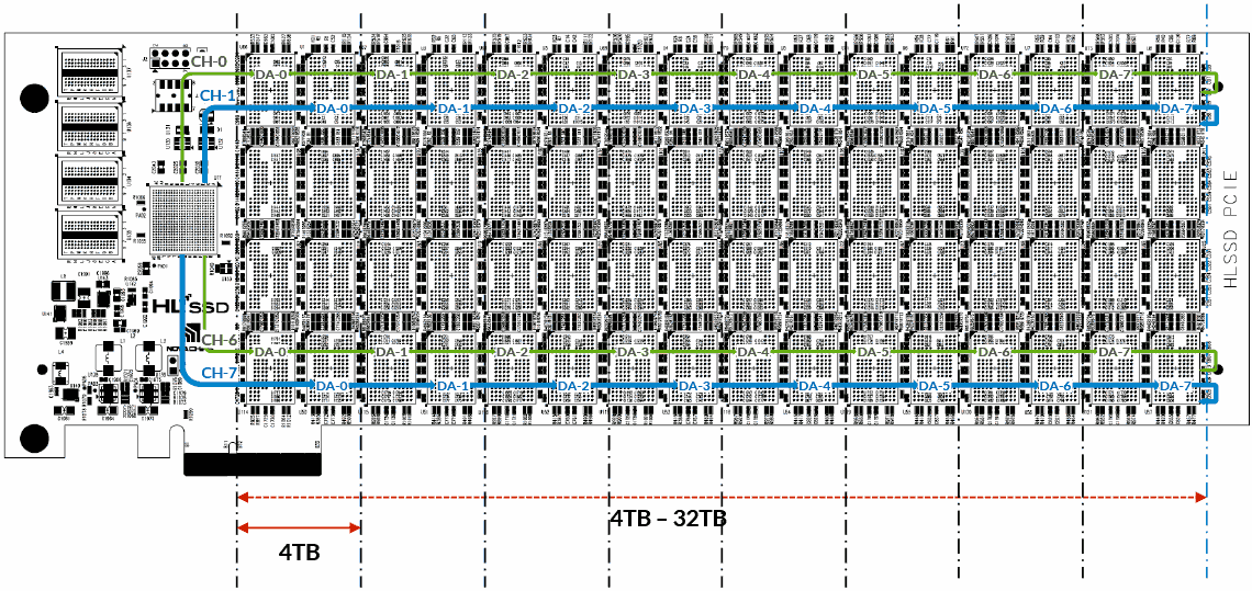 Now consider the capacity in this AIC, considering that each module in the sample can now be 256GB of RAW storage, and all chips running into a single controller design.