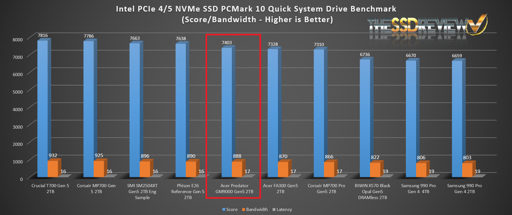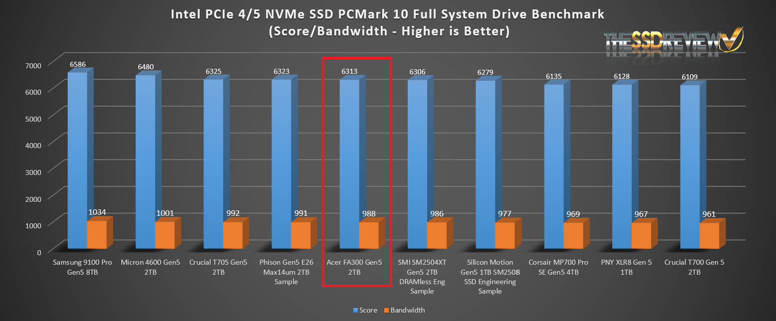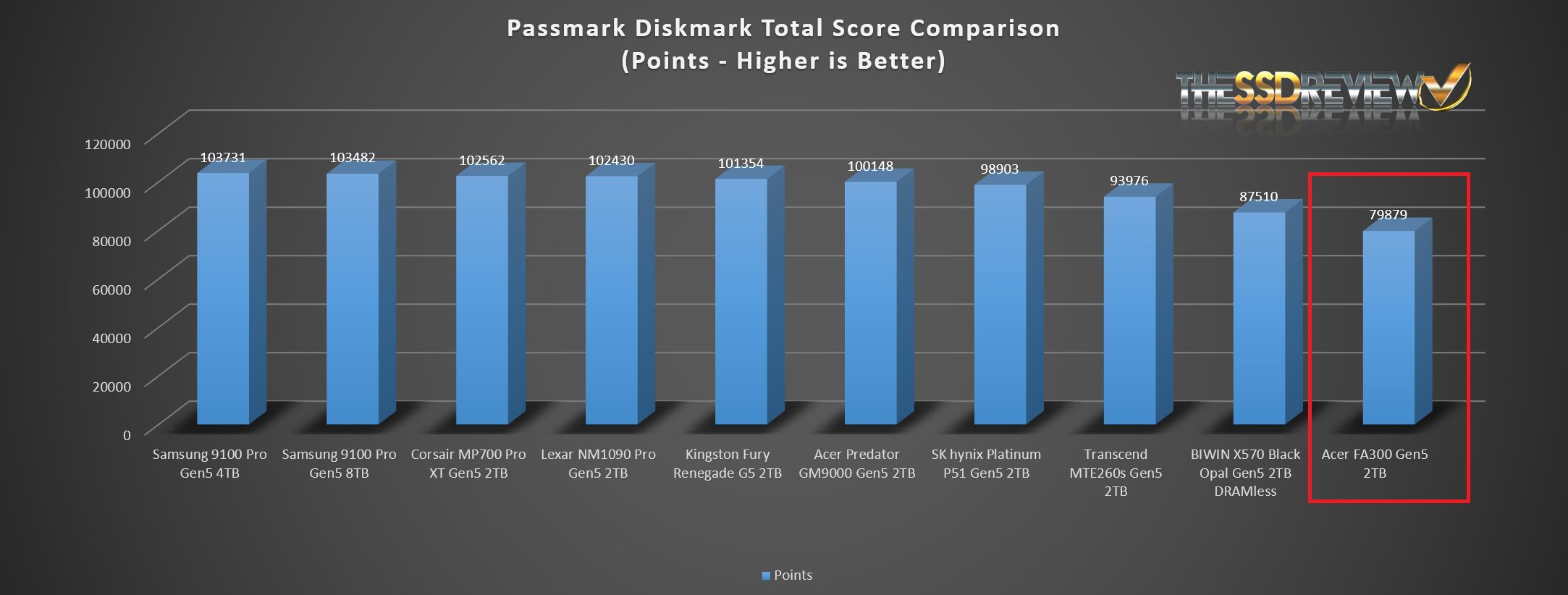 The Acer FA300 Gen5 2TB SSD placed well with several other DRAMless SSDs trailing behind.