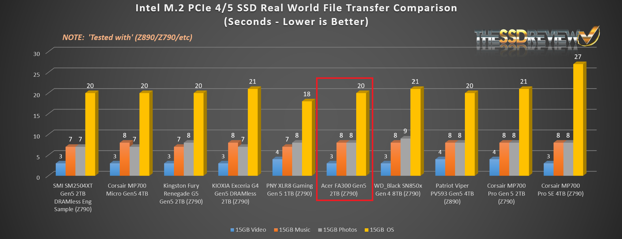 For our True Data Testing, we simply loaded 15GB video, music, photo and OS files onto the Acer FA300 Gen5 2TB SSD and copied the data to a new folder on that same disk.