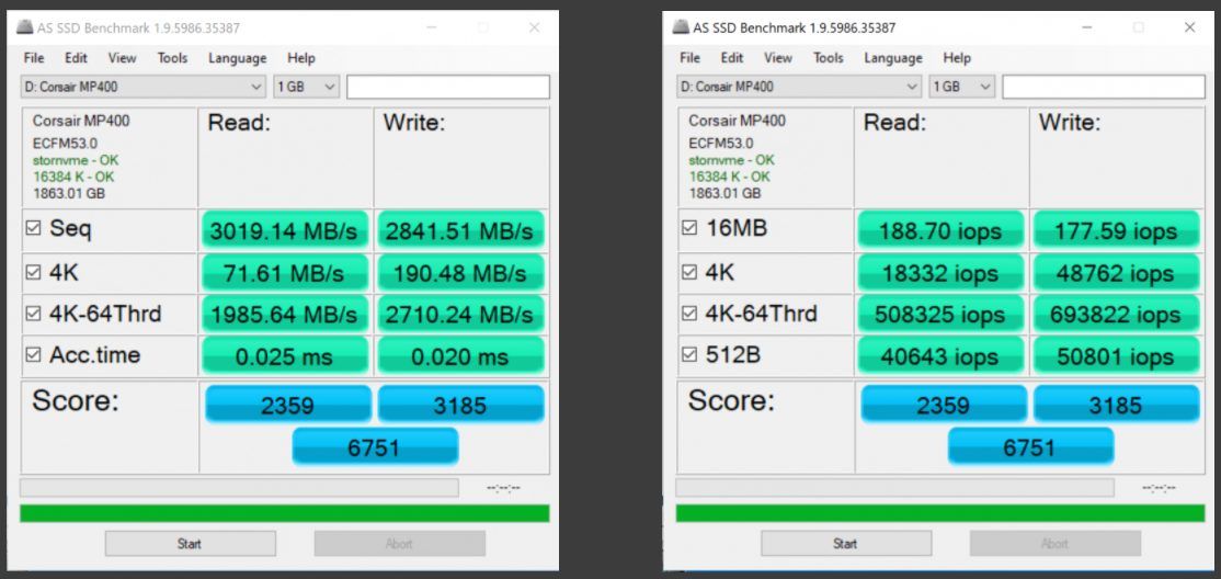 The toughest benchmark available for solid state drives is AS SSD as it relies solely on incompressible data samples when testing performance. For the most part, AS SSD tests can be considered the ‘worst case scenario’ in obtaining data transfer speeds and many enthusiasts like AS SSD for their needs. Transfer speeds are displayed on the left with IOPS results on the right.
