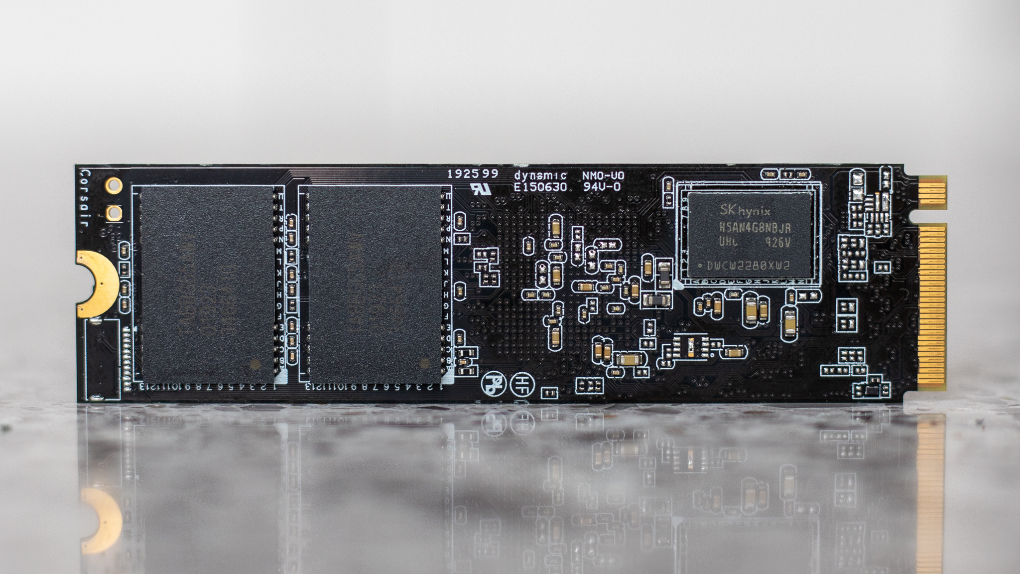 The ONLY company right now that has an available Gen 4 controller is Phison with its PSE5016-E16 controller shown here. The M.2 is a 2280 form factor and contains four pieces of Toshiba BiCS 4 TLC NAND flash memory (two on each side of the SSD), along with a SKHynix DDR4 DRAM cache module.
