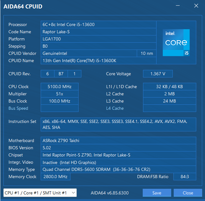 ASROCK Z790 TAICHI PCIE 5.0 TEST BENCH COMPONENTS