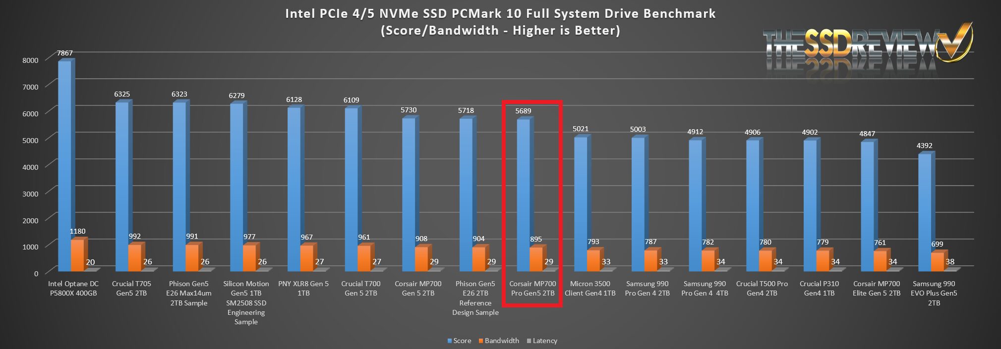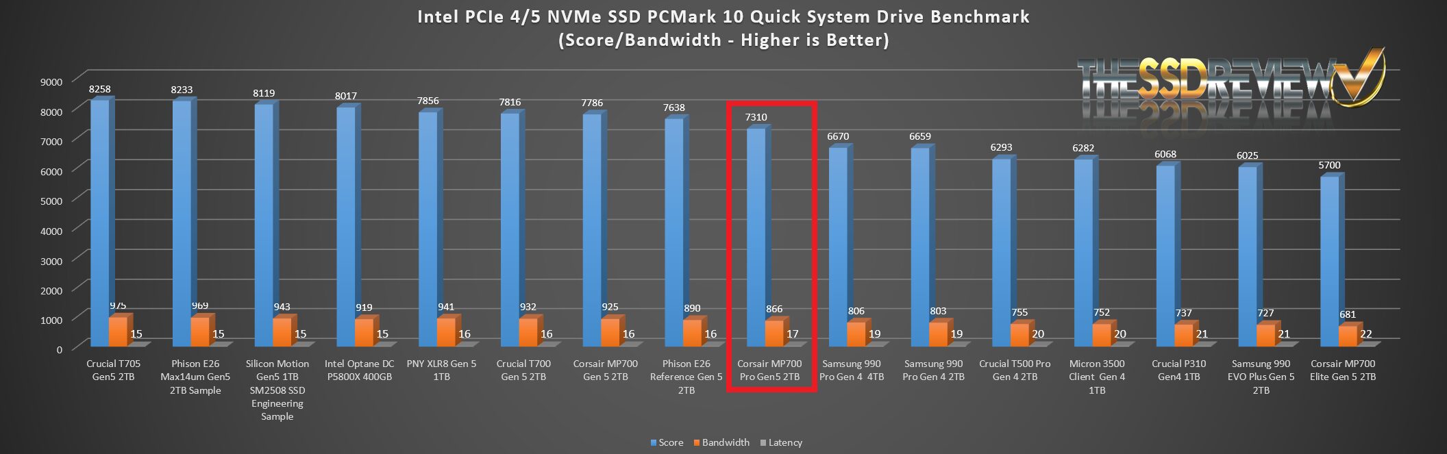 The Corsair MP700 Pro Gen 5 2TB SSD once again placed in the Top 10 right there beside the original E26 result.