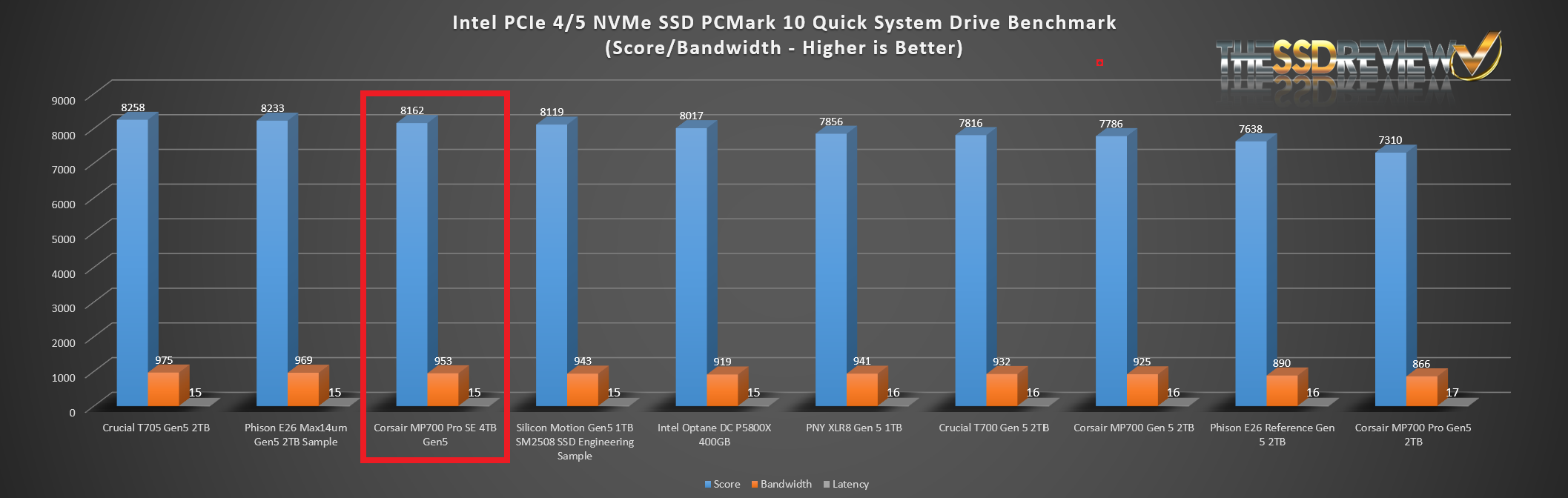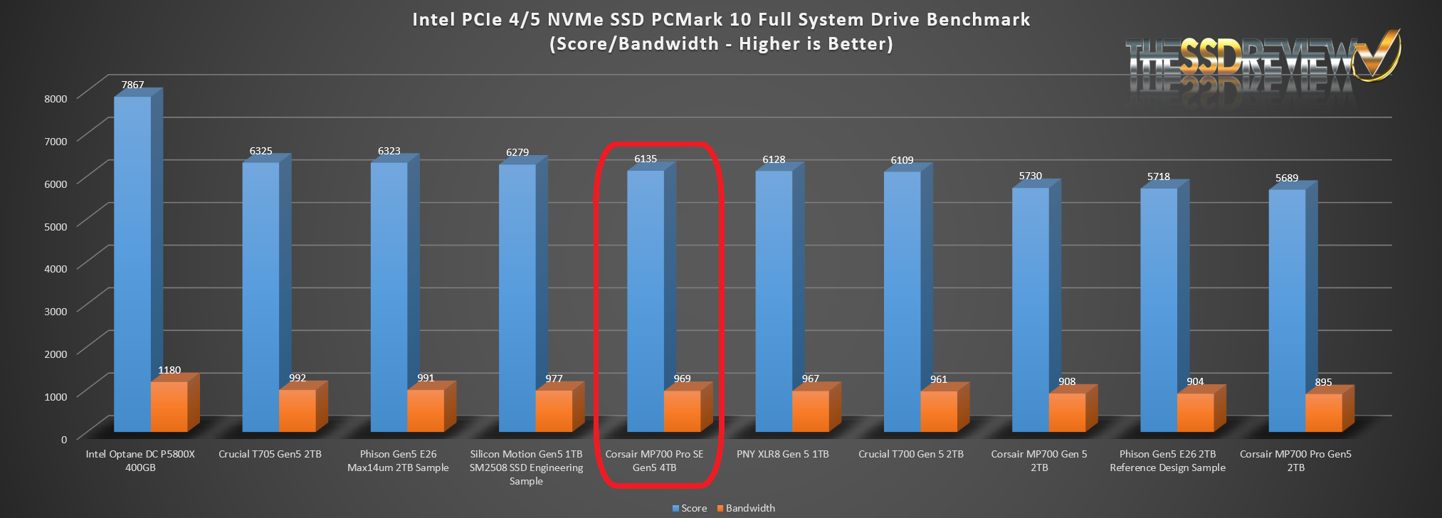 The Corsair MP700 Pro SE Gen 5 4TB SSD once again placed in the Top 10 right there beside the original E26 Max14um result.