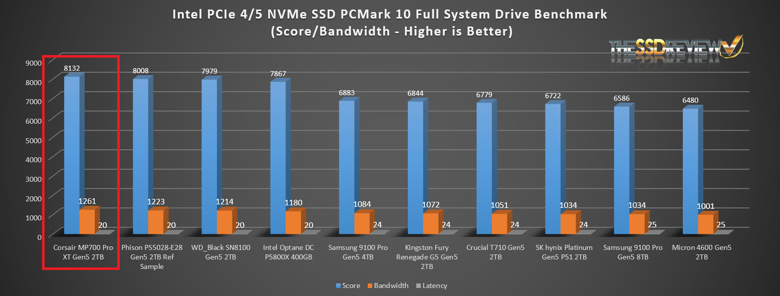 The Corsair MP700 Pro XT returned the best result we have ever received in PCMark 10 Full System Drive Benchmark.