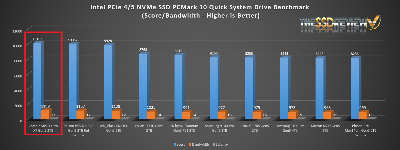 Just as we saw with the Full System Drive Benchmark, the Corsair MP700 Pro XT returned the best result to date in Quick System Drive Testing as well.