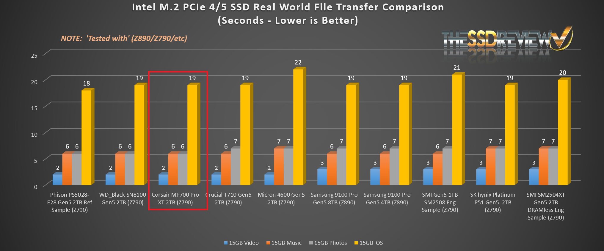 For our True Data Testing, we simply loaded 15GB video, music, photo and OS files onto the Corsair MP700 Pro XT 2TB SSD and copied the data to a new folder on that same disk.