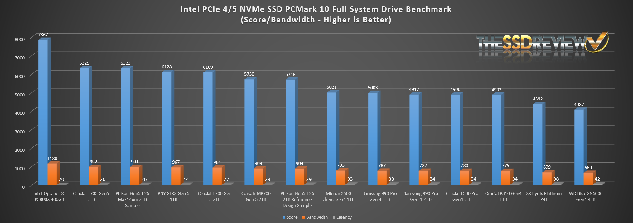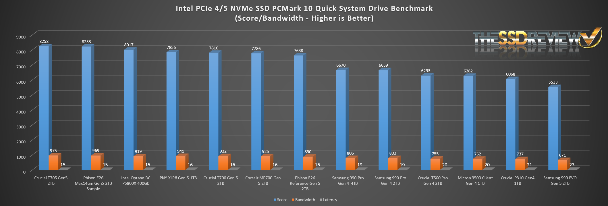 The 1TB P310 once again placed 12th in our SSDs tested to date in the PCMark 10 Quick System Drive Test.