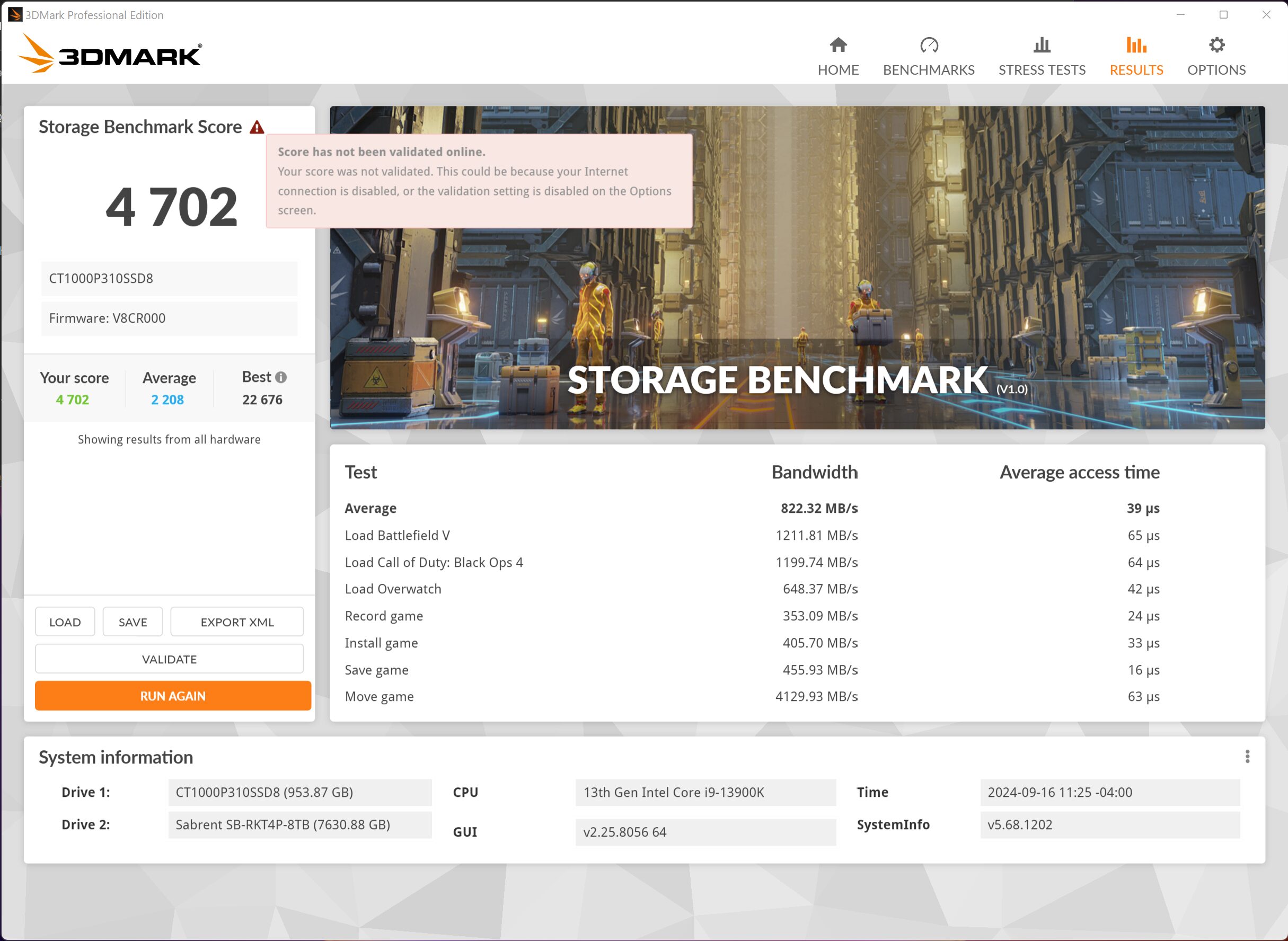 The Crucial P310 placed 10th in all SSDs tested in 3DMark to date.