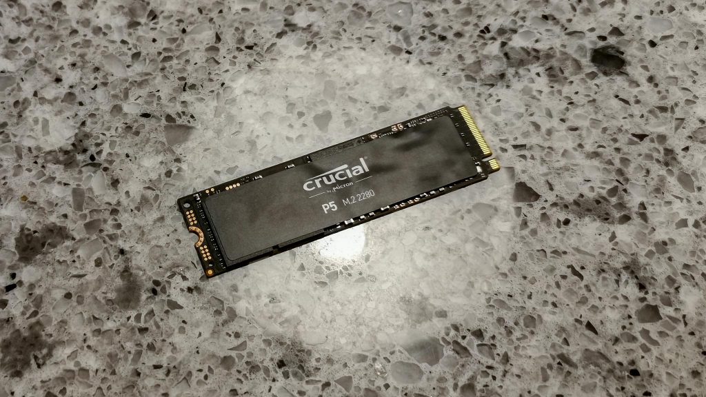 The result… I chose the Crucial P5 1TB. Crucial themselves in the UK have got it on offer at about £110 on their own website at the moment which is cheaper than I could find the others.