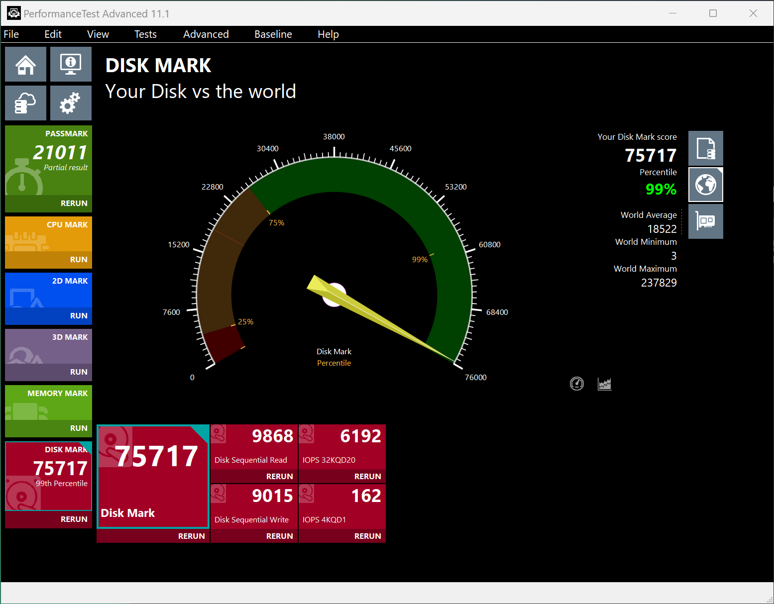 We thought we might add a few extras in our report today, PassMark Performance Test DiskMark component being a nice addition. This software tests sequential reads and writes, along with IOPS and compares the result with millions of other SSDs worldwide. We might suggest being in the 99th percentile of all SSDs tested was a nice resul