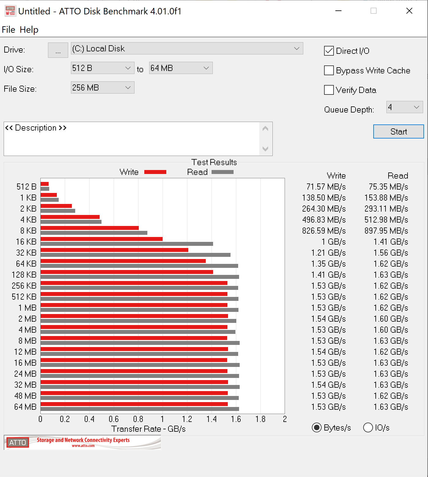 ATTO Disk Benchmark is perhaps one of the oldest benchmarks going and is definitely the main staple for manufacturer performance specifications. ATTO uses RAW or compressible data and, for our benchmarks, we use a set length of 256mb and test both the read and write performance of various transfer sizes ranging from 0.5 to 8192kb. Manufacturers prefer this method of testing as it deals with raw (compressible) data rather than random (includes incompressible data) which, although more realistic, results in lower performance results.