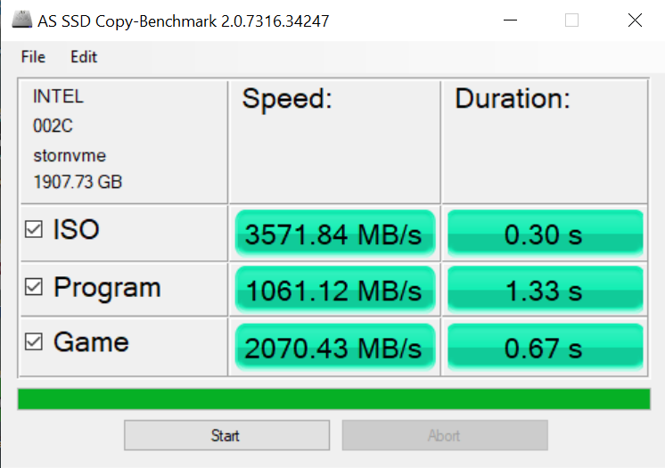 The AJA Video Systems Disk Test is relatively new to our testing and tests the transfer speed of video files with different resolutions and Codec.