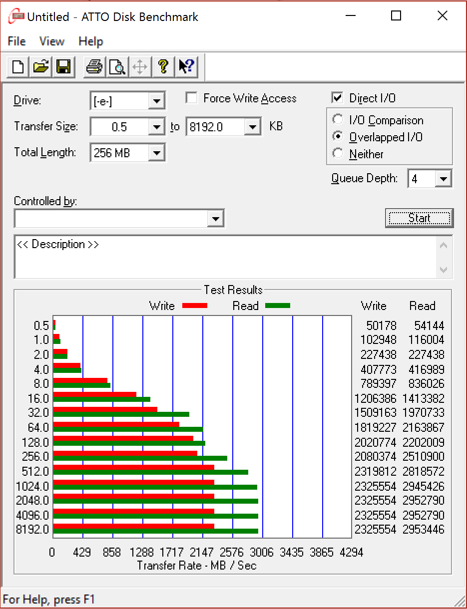ATTO Disk Benchmark is perhaps one of the oldest benchmarks going and is definitely the main staple for manufacturer performance specifications. ATTO uses RAW or compressible data and, for our benchmarks, we use a set length of 256mb and test both the read and write performance of various transfer sizes ranging from 0.5 to 8192kb. Manufacturers prefer this method of testing as it deals with raw (compressible) data rather than random (includes incompressible data) which, although more realistic, results in lower performance results.