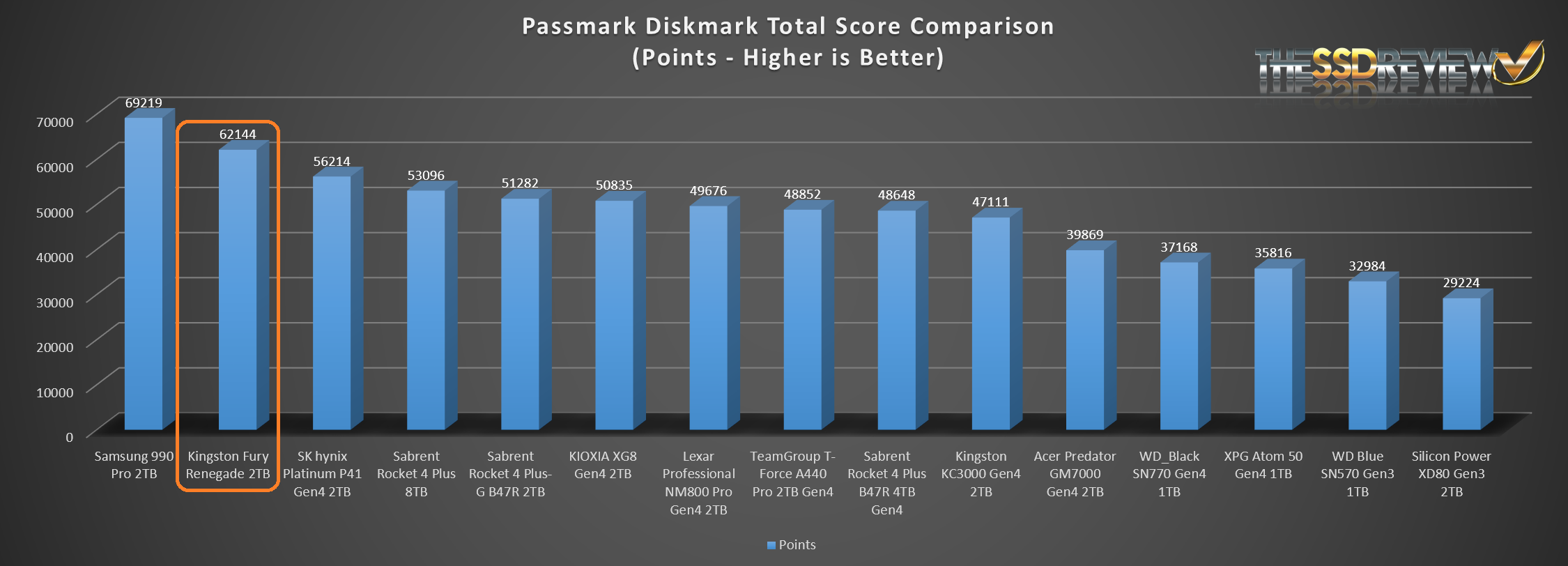 The Kingston Fury Renegade placed 2nd just behind the Samsung 990 Pro in DiskMark testing which was totally unexpected.