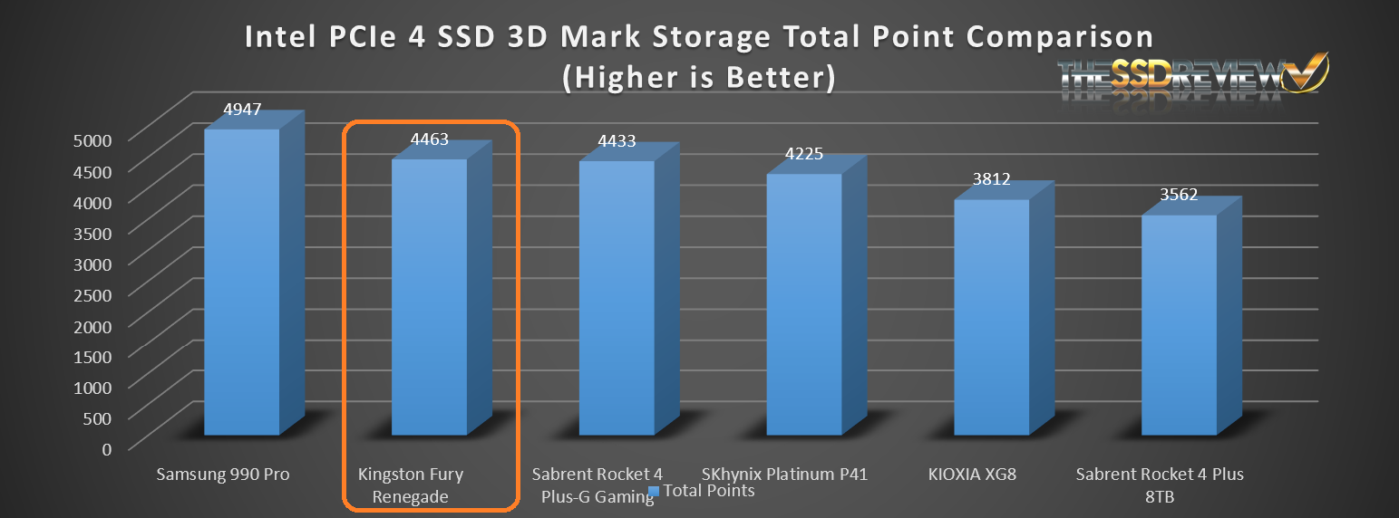 The Kingston Fury Renegade Gen4 NVMe SSD was designed to appeal to the gaming crowd and it definitely fits the bill. It hits speeds above 7GB/s with over a million IOPS and came up with some of the best results we might have expected for a Micron 176-layer B47R premium TLC NAND SSD. Its performance was not only consistent, but also, just about the best 3DMark Storage Benchmark test we have seen to date. This SSD was just as impressive showing in No. 2 position just behind the Samsung 990 Pro in PassMark as it was placing in the top 4 in game load time testing.