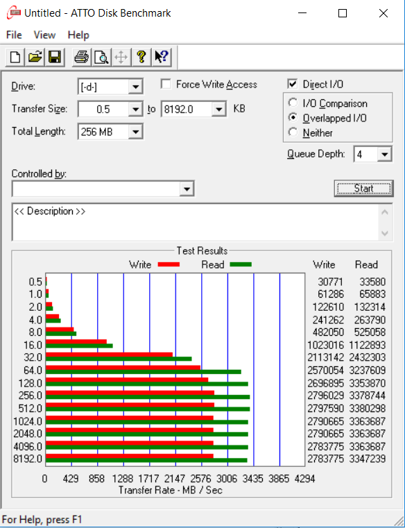 ATTO Disk Benchmark is perhaps one of the oldest benchmarks going and is definitely the main staple for manufacturer performance specifications. ATTO uses RAW or compressible data and, for our benchmarks, we use a set length of 256mb and test both the read and write performance of various transfer sizes ranging from 0.5 to 8192kb. Manufacturers prefer this method of testing as it deals with raw (compressible) data rather than random (includes incompressible data) which, although more realistic, results in lower performance results.