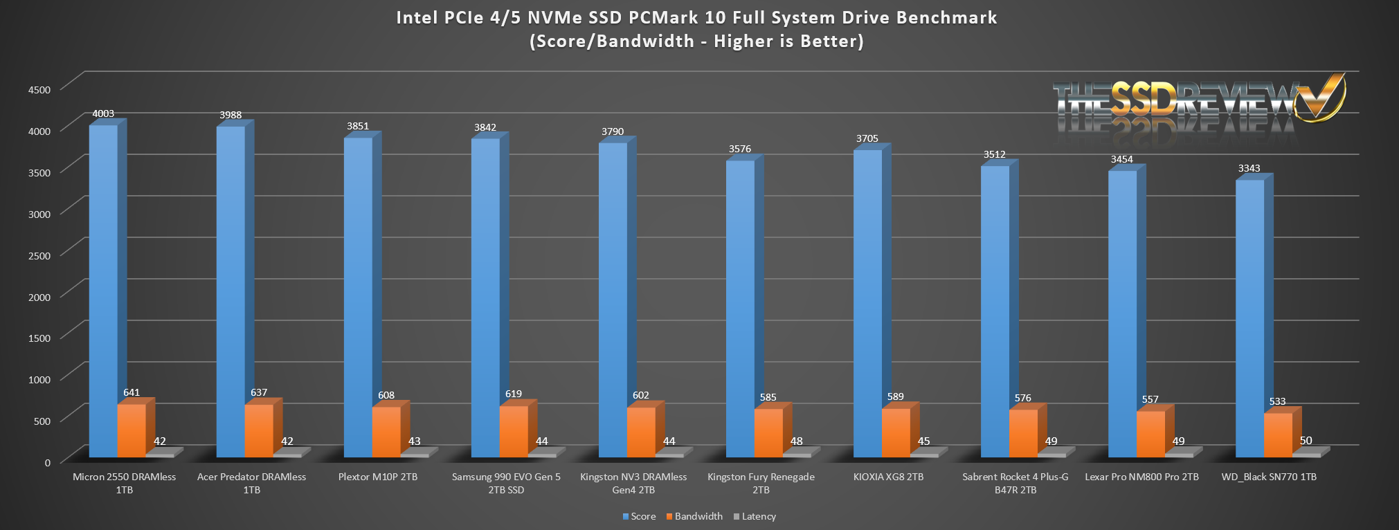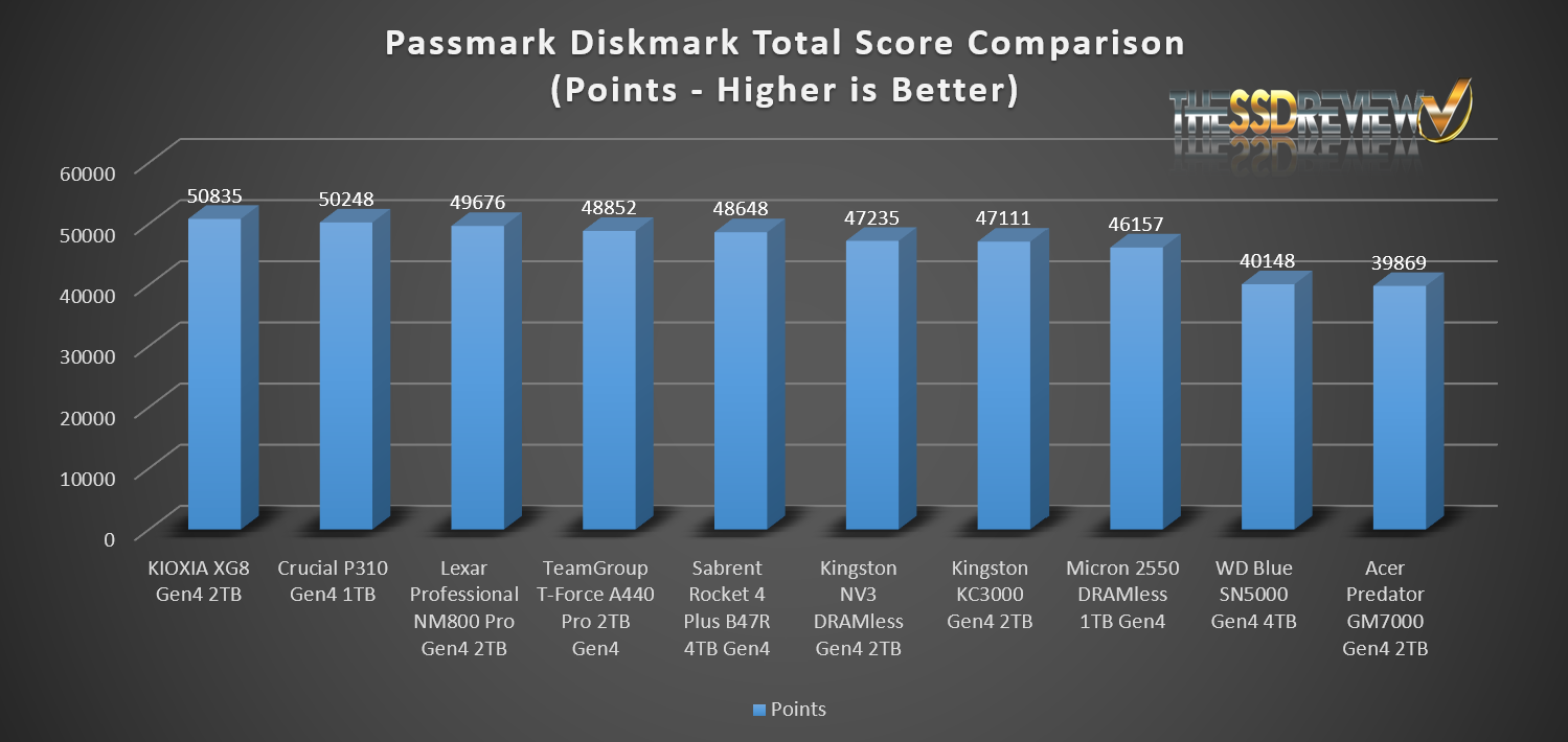 The Kingston NV3 Gen 4 2TB NVMe SSD performed well and again placed #20th of all SSDs we have tested to date. The below chart identifies other SSDs in the range of the NV3 and not necessarily the top SSDs tested to date.