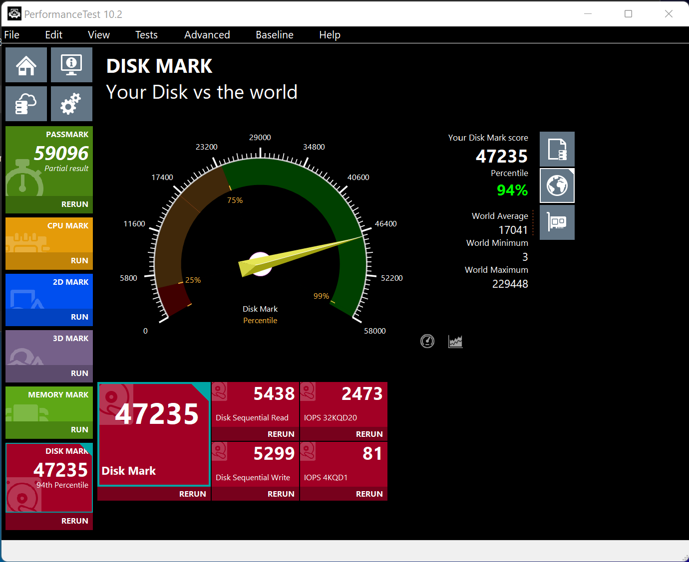 We thought we might add a few extras in our report today, PassMark Performance Test DiskMark component being a nice addition. This software tests sequential reads and writes, along with IOPS and compares the result with millions of other SSDs worldwide. We might suggest being in the 94th percentile of all SSDs tested was a decent result.