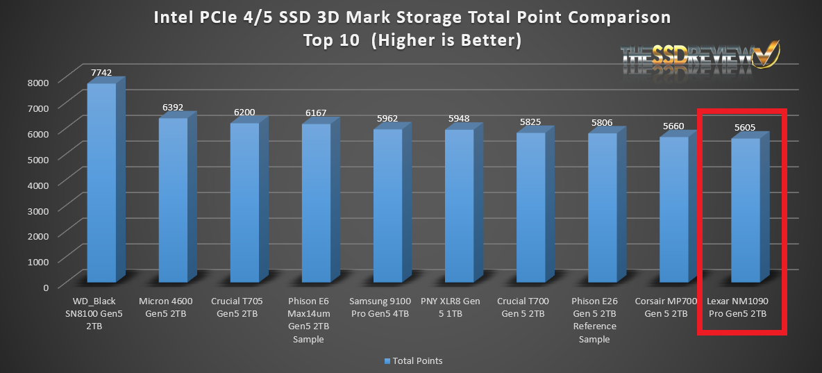 The Lexar Professional NM1090 Pro Gen5 SSD once again made Top 10 in 3DMark, reaching that coverted 10th spot which w as excellent.
