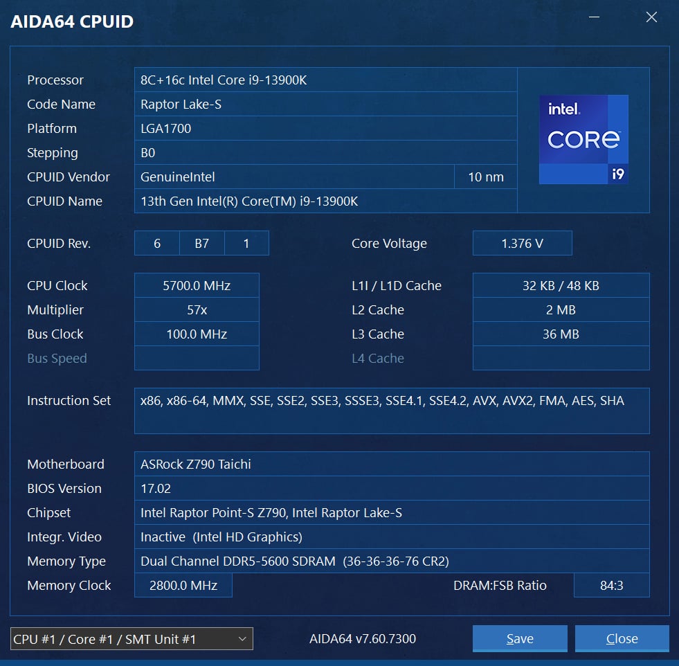 | CPU: | Intel 13th Gen Core i9-13900K |