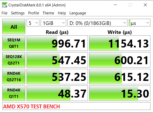 Crystal Disk Benchmark is used to measure read and write performance through sampling of random data which is, for the most part, incompressible. Performance is virtually identical, regardless of data sample so we have included only that using random data samples.