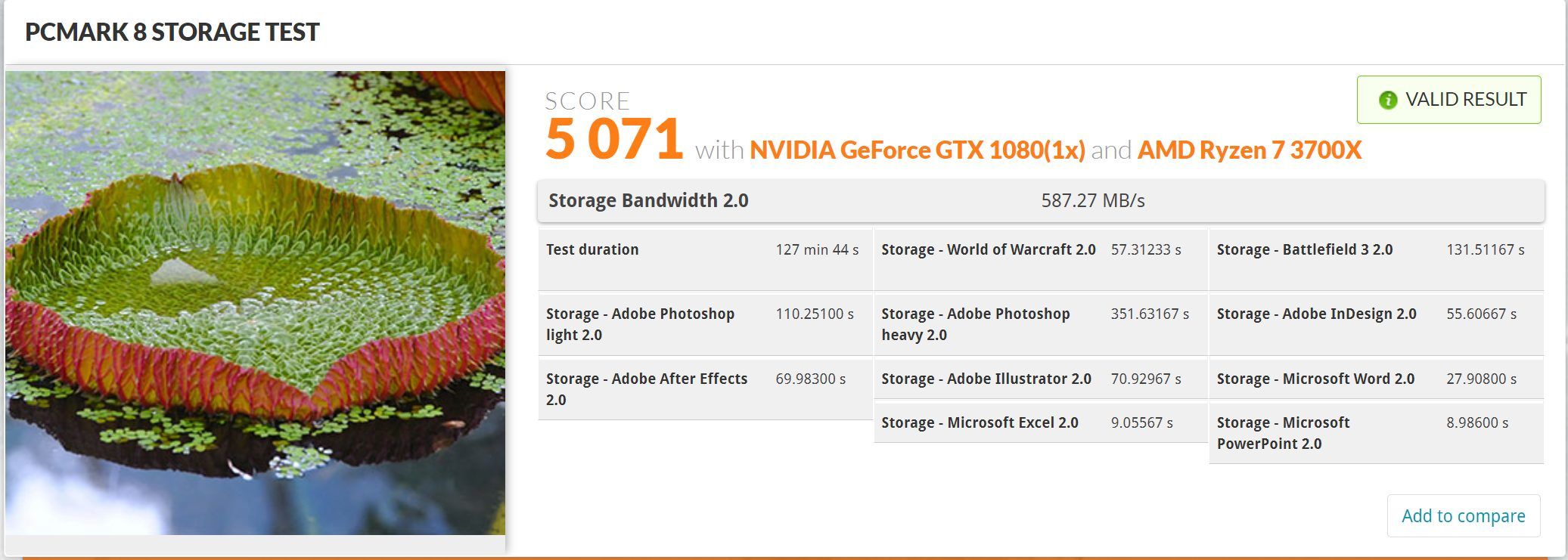 The SSD Review uses PCMark 8’s Storage test suite to create testing scenarios that might be used in the typical user experience. With 10 traces recorded from Adobe Creative Suite, Microsoft Office and a selection of popular games, it covers some of the most popular light to heavy workloads. Unlike synthetic storage tests, the PCMark 8 Storage benchmark highlights real-world performance differences between storage devices. After an initial break-in cycle and three rounds of the testing, we are given a file score and bandwidth amount. The higher the score/bandwidth, the better the drive performs.