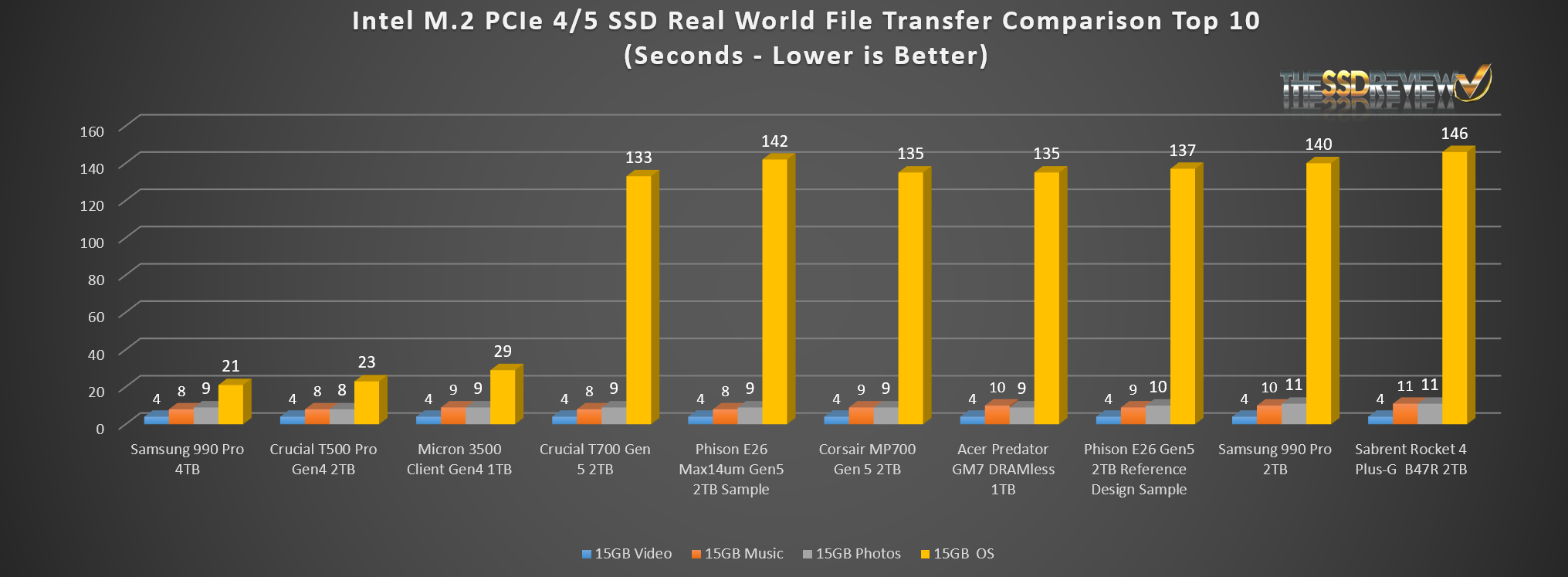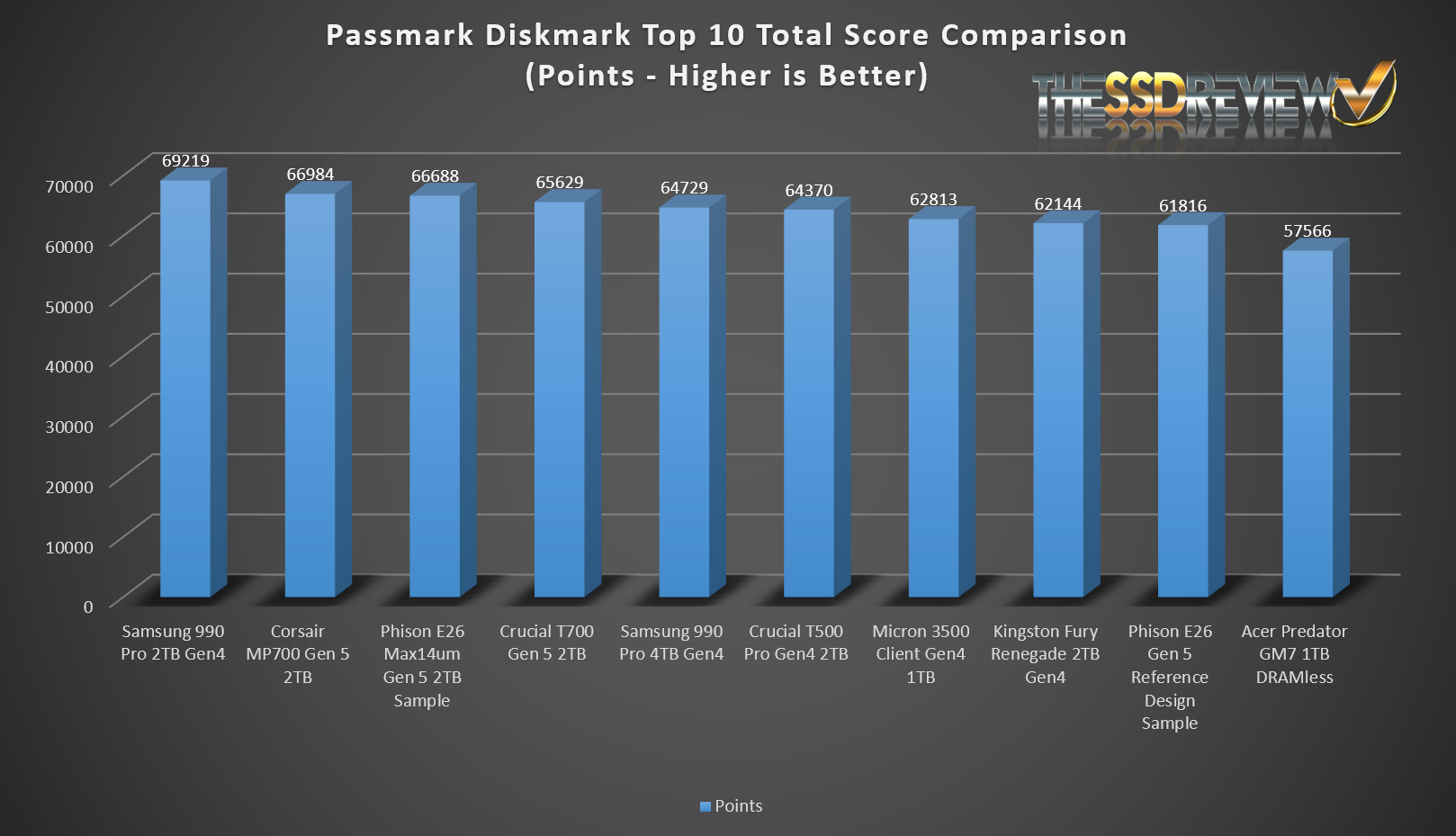 The Phison E26 Max14um placed in the top 3 of SSDs tested to date.