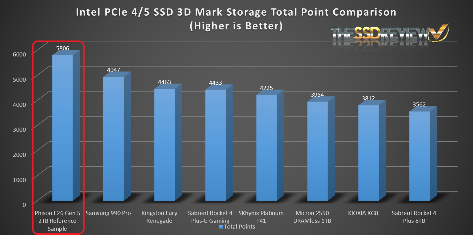 3DMark is a fairly new tool in our toolbox and we have only tested a few other drives to date, however, this Phison E26 Gen5 Reference Sample seems to be making a statement.