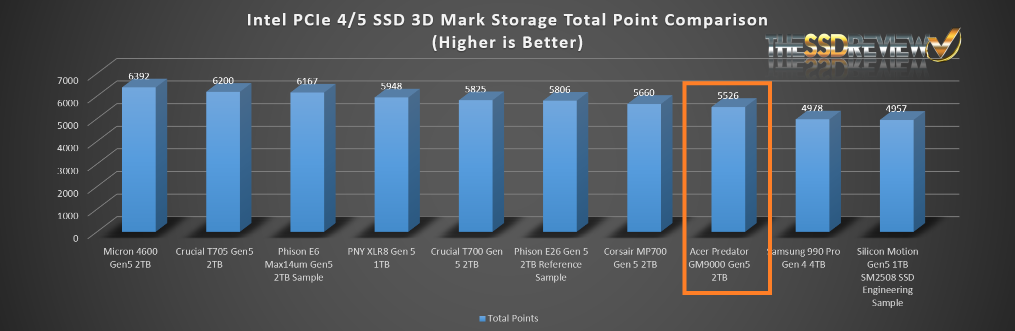 Yet another amazing result! The The Predator GM9000 attained Top 10 in our testing of SSDs to date.