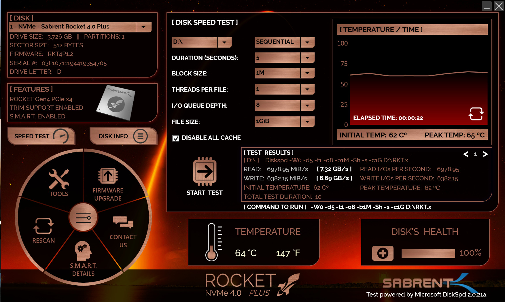 Checking Amazon, we see that the Sabrent Rocket 4 Plus Gen 4 NVMe M.2 SSD is available for a price of $999.99. This also includes access to Sabrent’s Rocket Control Panel and Acronis True Image cloning software. Something we were totally unaware of until this report is that, depending on whether you are checking a PCIe 3 SSD, PCIe 4 Q or PCIe 4 Rocket, the color pattern of the software changes and includes different features as shown here where we have just tested the Rocket 4 Plus: