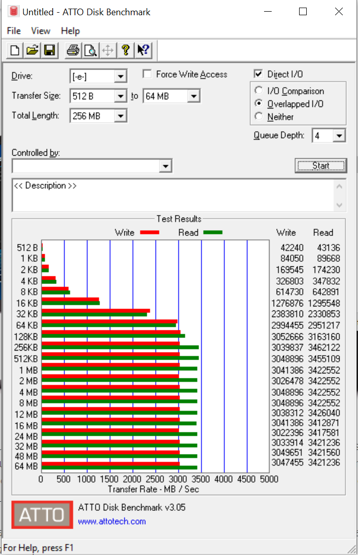 Listed specifications for the Sabrent Rocket Q NVMe 4TB SSD are 3450MB/s read and 2900MB/s write. These results are pretty much bang on, but just as importantly, there is a very steady speed progression with data size increase.