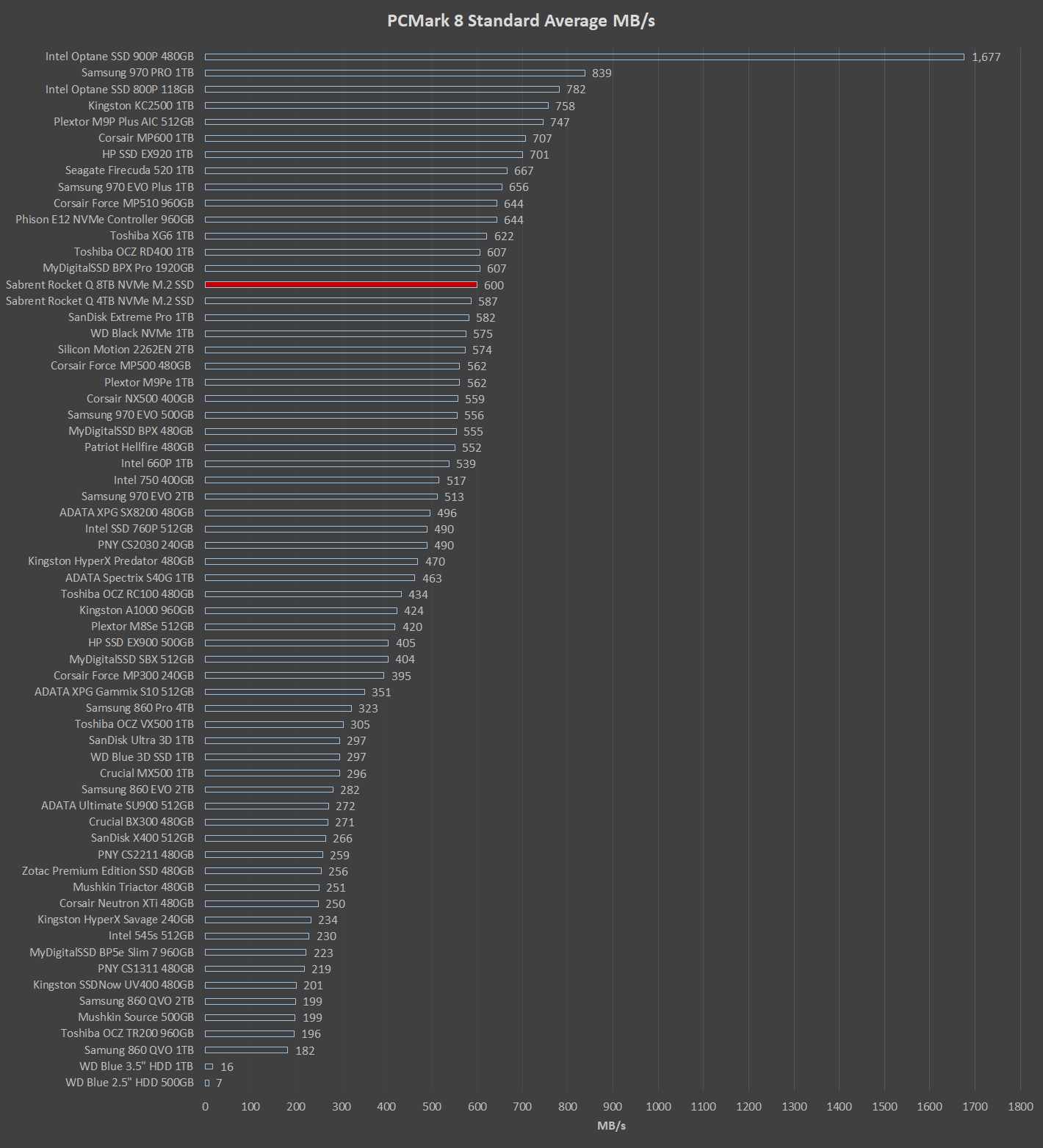 The Sabrent Rocket Q provides decent PCMark 8 Test Results, right up there with other premium SSDs.