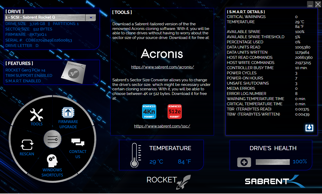 Last but not least, let’s not forget that Sabrent also provides you with a free copy of Acronis cloning software via their Sabrent Rocket Control panel, which is available here.