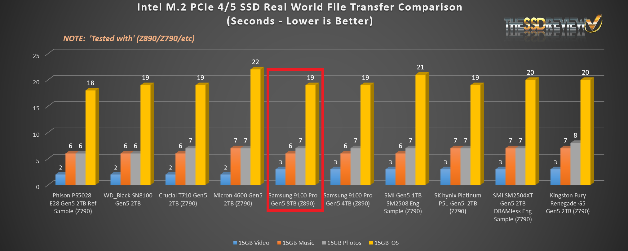 For our True Data Testing, we simply loaded 15GB video, music, photo and OS files onto the Samsung 9100 Pro Gen5 8TB SSD and copied the data to a new folder on that same disk.