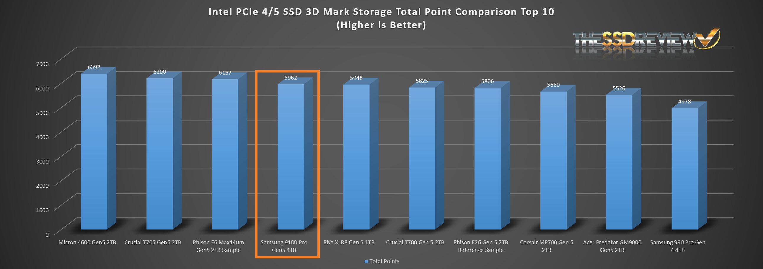 The Samsung 9100 Pro placed fourth of all 3DMark Storage Benchmark tests to date which is excellent considering this benchmark is the truest real world type test available.