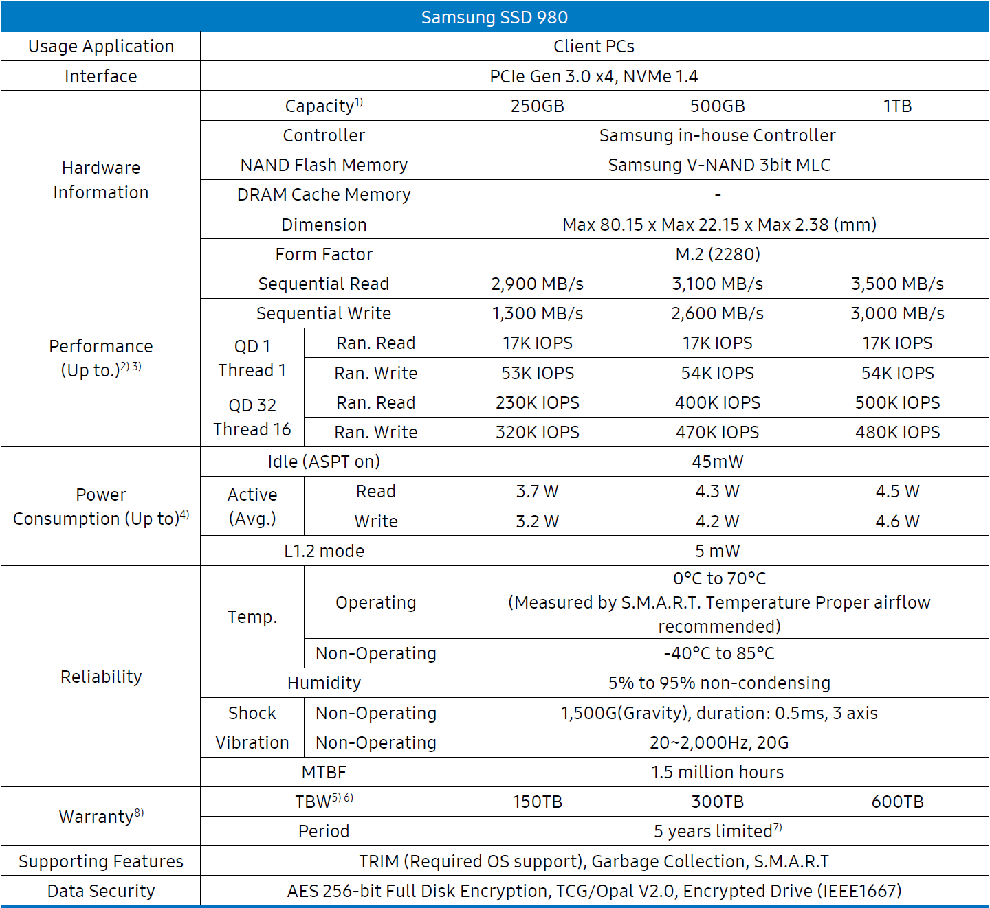 The Samsung 980 is a PCIe 3.0 (Gen 3) M.2 SSD that utilizes the latest NVM Express 1.4 protocol. This is rather important as this is a DRAM-less SSD and the Host Memory Buffer (HMB) with DMA (Direct Memory Access) only became possible with NVMe ver. 1.2.