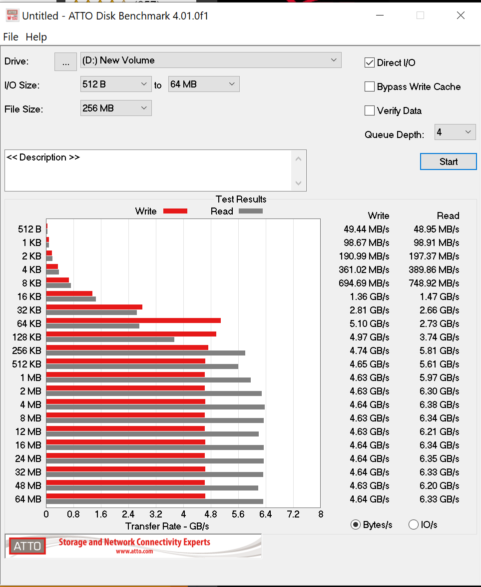 Samsung shows very solid performance progression as sample sizes increase which is something we like to see from this benchmark specifically. It also falls just under specs with 6.38GB/s read and 5.10GB/s write but nothing to worry about.