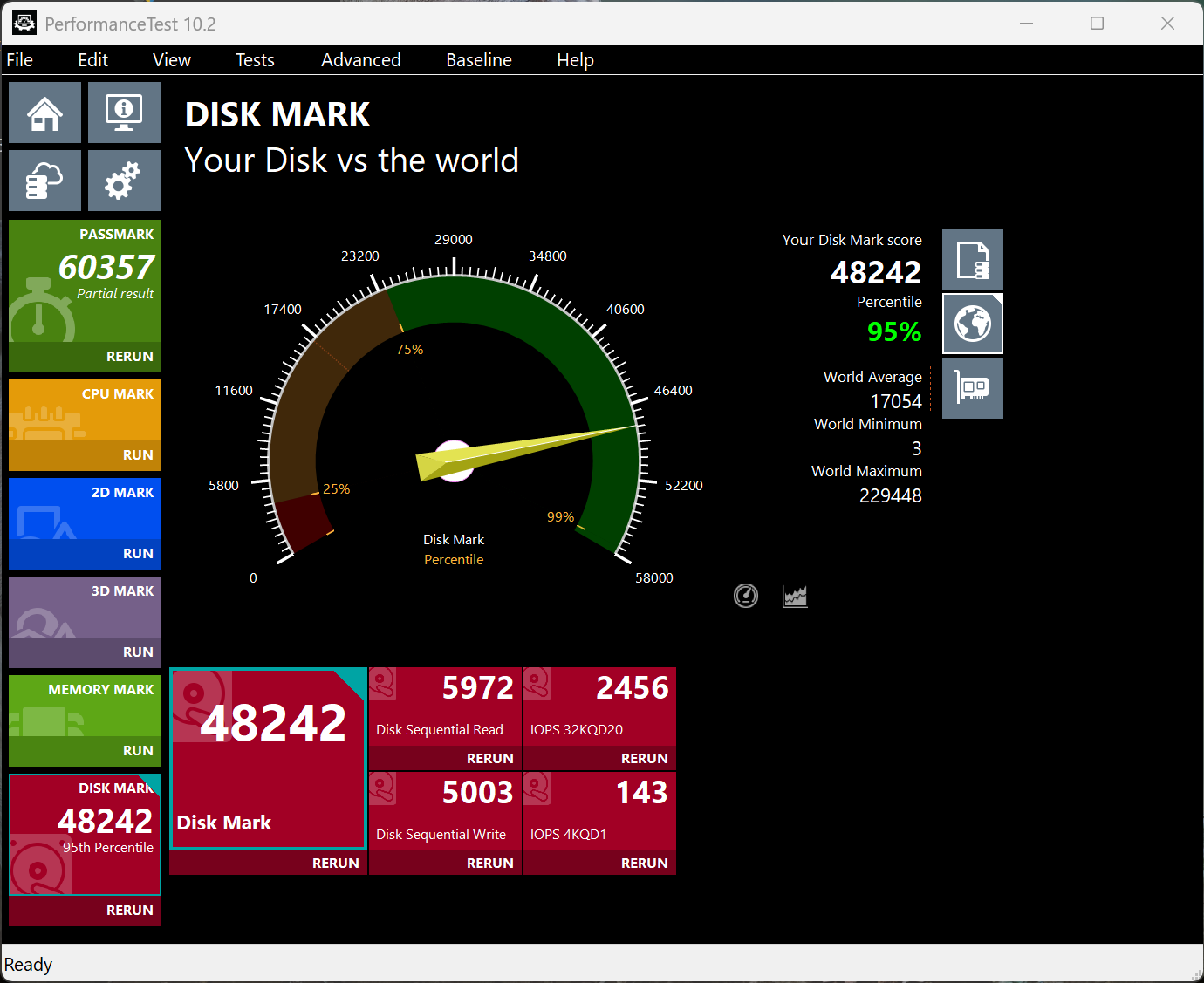 We thought we might add a few extras in our report today, PassMark Performance Test DiskMark component being a nice addition. This software tests sequential reads and writes, along with IOPS and compares the result with millions of other SSDs worldwide. We might suggest being in the 94th percentile of all SSDs tested was a decent result.