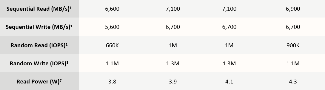 The SanDisk WD Blue SN5100 is a PCIe 4.0 (Gen4) four lane (x4) M.2 form factor 2280 SSD that is compliant with the NVMe 2.0 SSD protocol standard. It will be available in 500GB, 1,2 and 4TB capacities and its performance specifications list 7100MB/s read and 6700MB/s write along with 1000K IOPS read and 1300K IOPS write for the 2TB capacity we have in hand. performance is variable depending on capacity and full performance iis shown here: