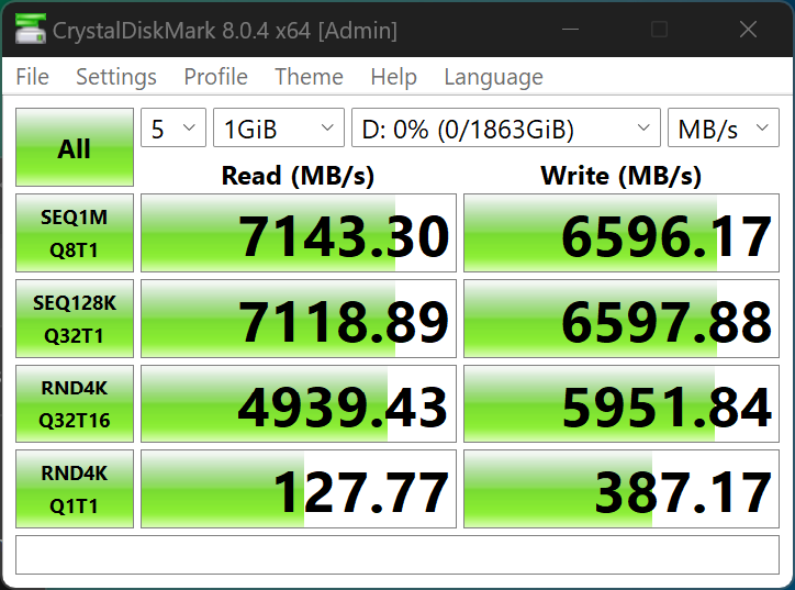 The AJA Video Systems Disk Test is relatively new to our testing and tests the transfer speed of video files with different resolutions and Codec.