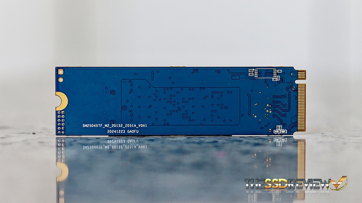 The Silicon Motion SM2504XT 2TB engineering sample SSD provided to us on departure from FMS has a single SM2504XT controller and 2-pieces of 3D TLC NAND flash memory situated on a blue 2280 (22mm wide x 80mm long) form factor M.2 PCB (printed circuit board)). The SM2504XT is a PCIe 5.0 (Gen 5) four lane (x4) SSD that uses the latest NVMe 2.0 SSD protocol. This 4-channel SSD controller is of the TSMC 6nm process, also known as the N6, which speaks to three things; performance, power efficiency and density.