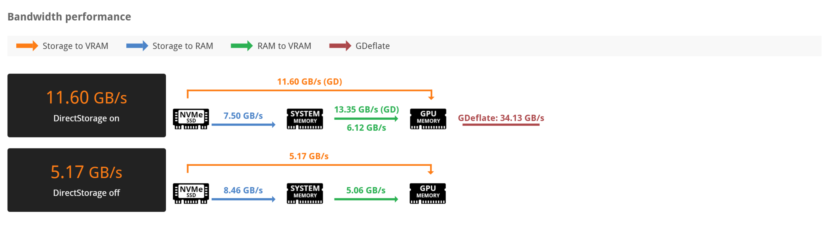 In our testing, data transfer achieved a 124.4% faster transfer of data than with MS DirectStorage disabled.