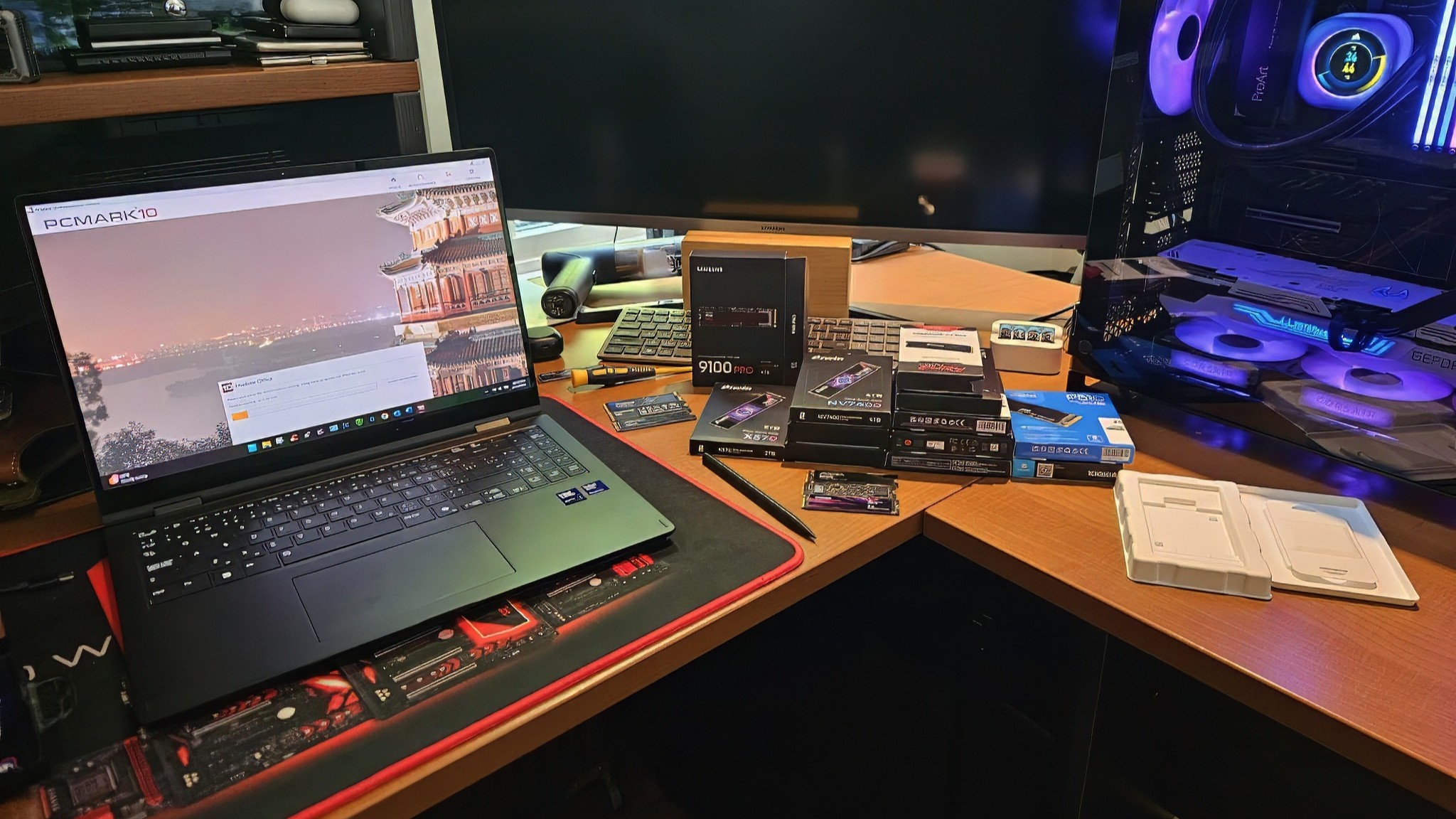 Our Test Bench for this benchmark was our Guiness Record holding 2024 LG Gram Pro 16″ 2-in-1 Convertible Ultrabook. Not only is this the thinnest 16″ laptop in the world, but it also contains the Intel Core Ultra 7 CPU 255H along with 32GB of LPDDR5X RAM running at 8400MHz. This system is only PCIe 4.0 with respect to SSD performance and that is perfect as we want all SSDs to exhibit battery life under the exact same conditions. It might be an unfair variable testing Gen4 and Gen5 SSDs at different speeds.